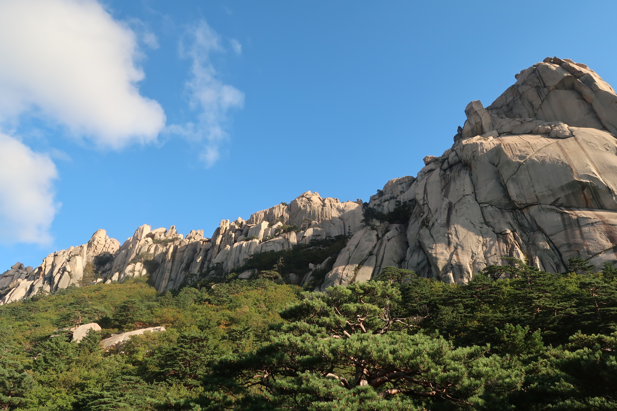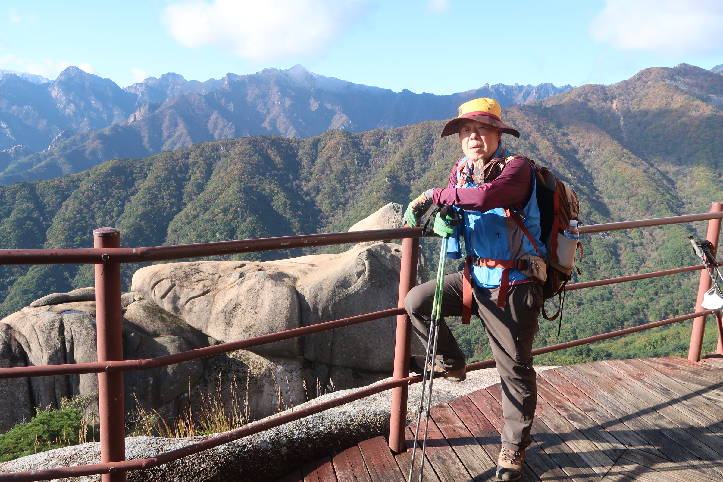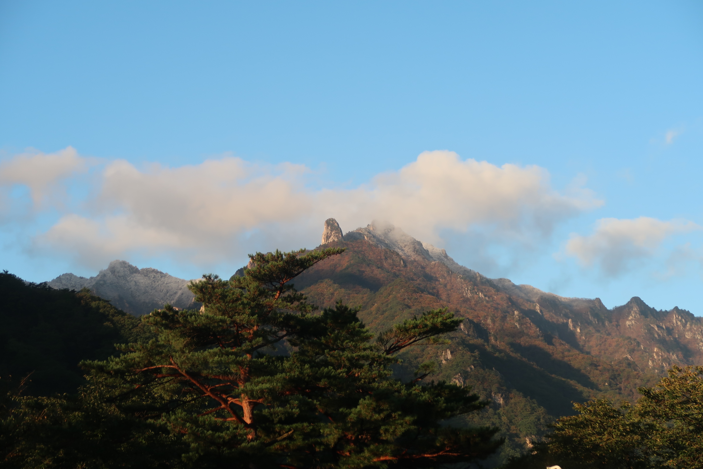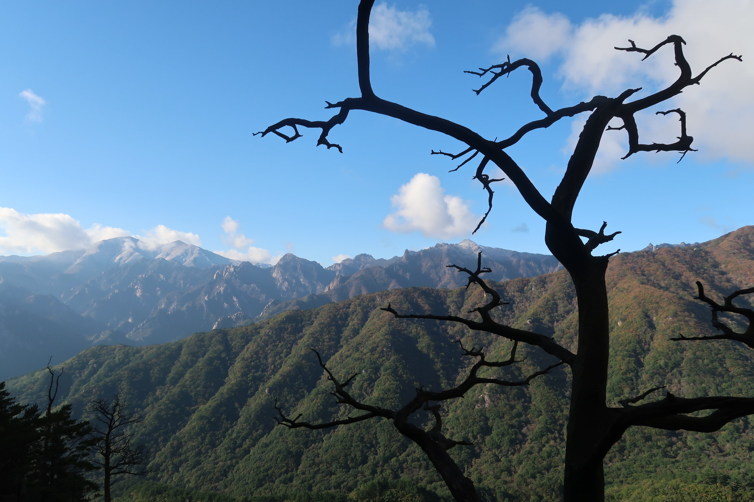 산행당일 설악산 상부에는 눈이 내려 하얗게 변 해 있었으며, 산의 상부는 앞이 말라버리 느낌이고 8부 능선 아래로는 며칠간의 기온 급강하로 인하여 잎이 그대래 얼어 붙은 상황이며