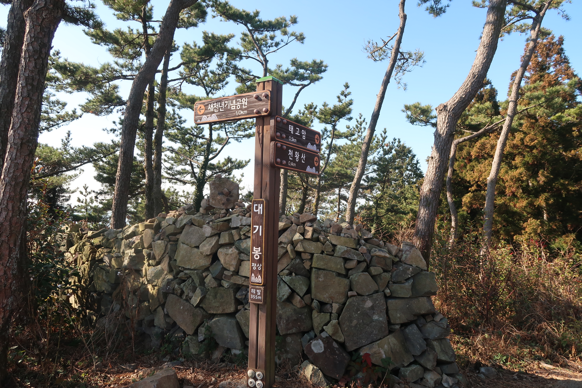 대기봉 정상 이정표--