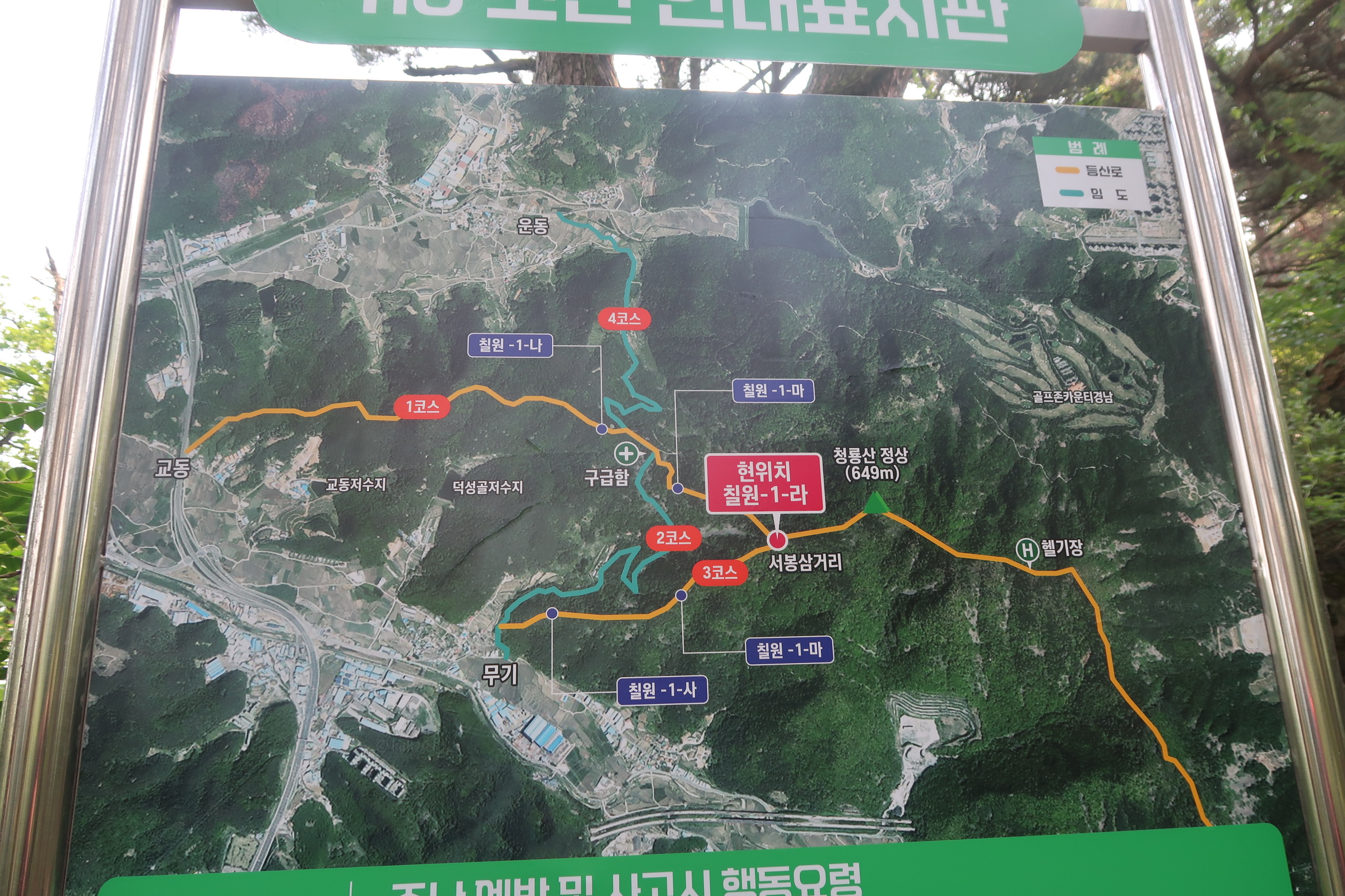 산행들머리 천주산 청룡산 안내도