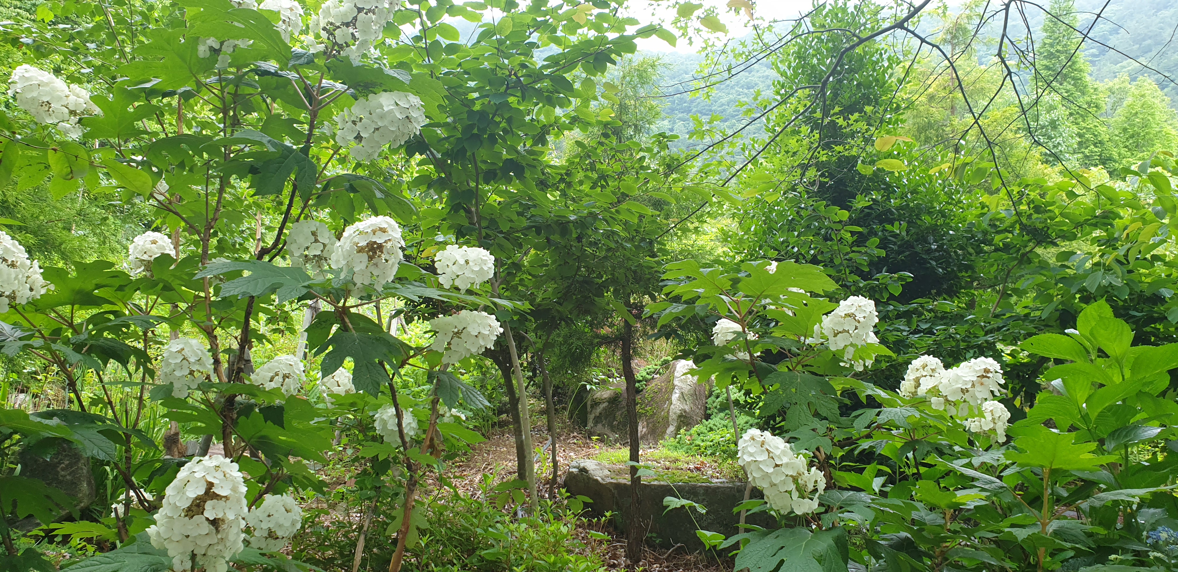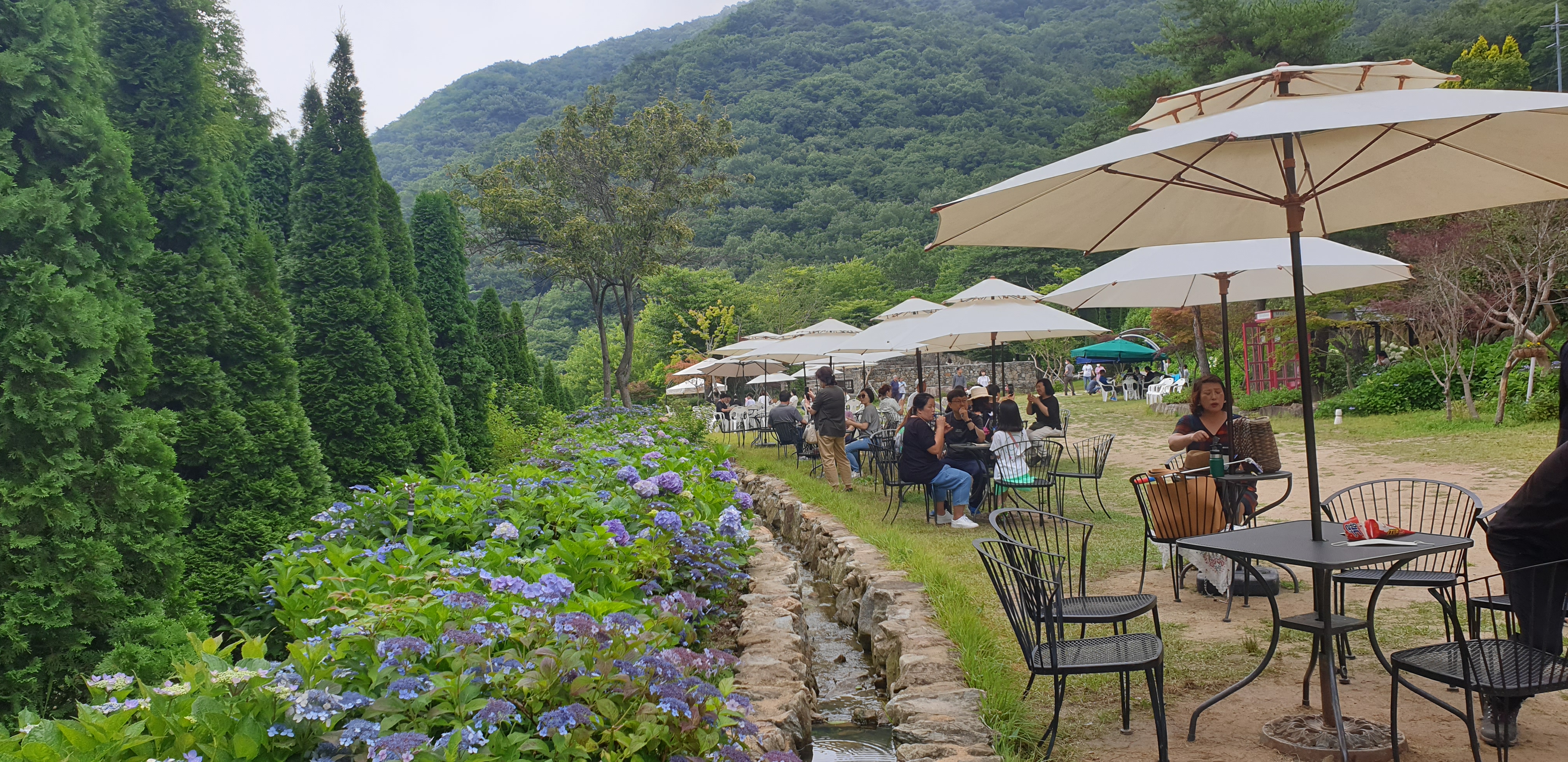 수국이 만개하면 그야말로 천국이 따로 없다. 올해는 봄 가뭄 때문에 수국 개화가 여느 해보다 늦으며