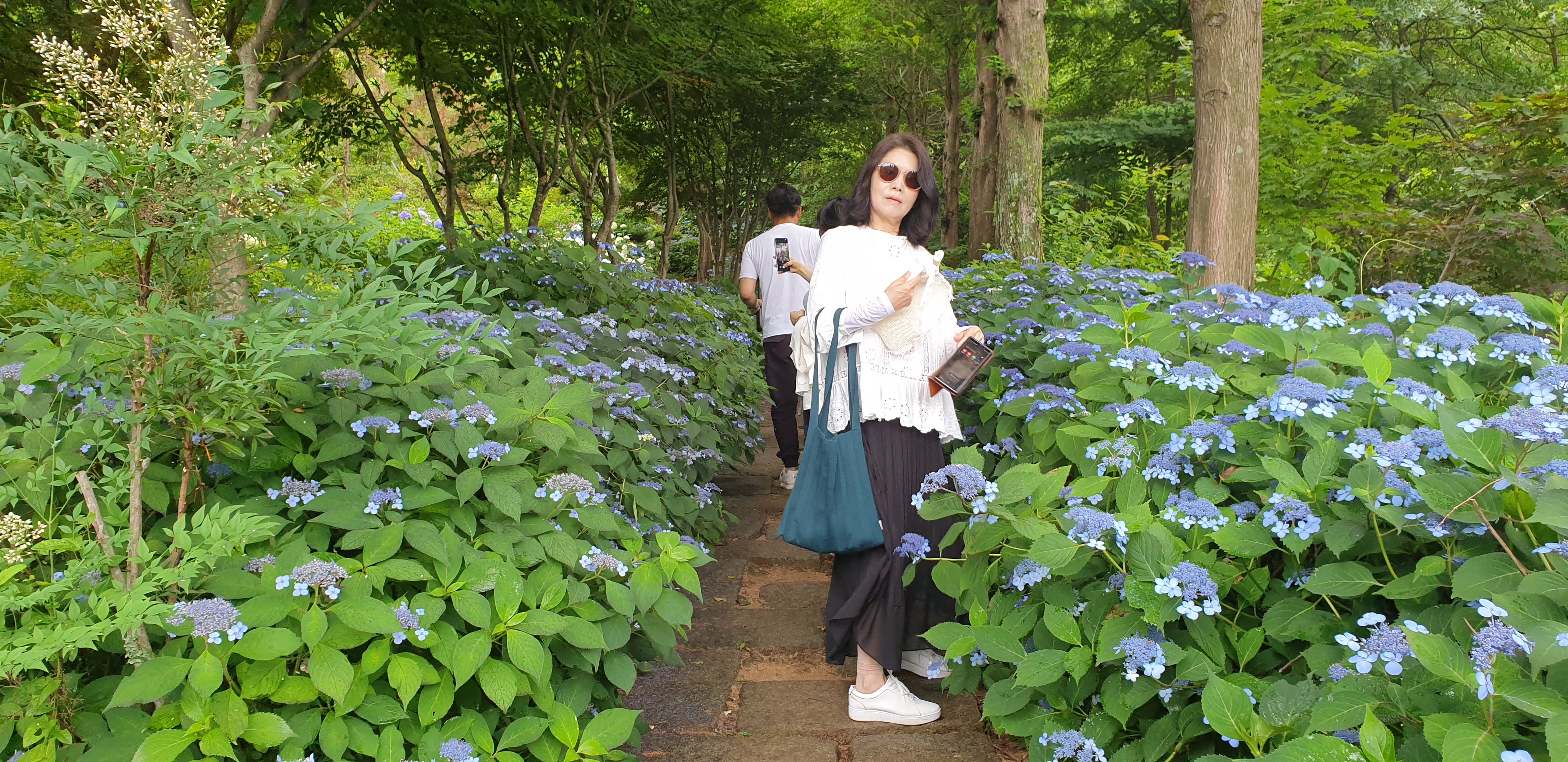 16만 평의 넓은 숲속 곳곳에는 아름다운 수국 30만 주가 피어난다.