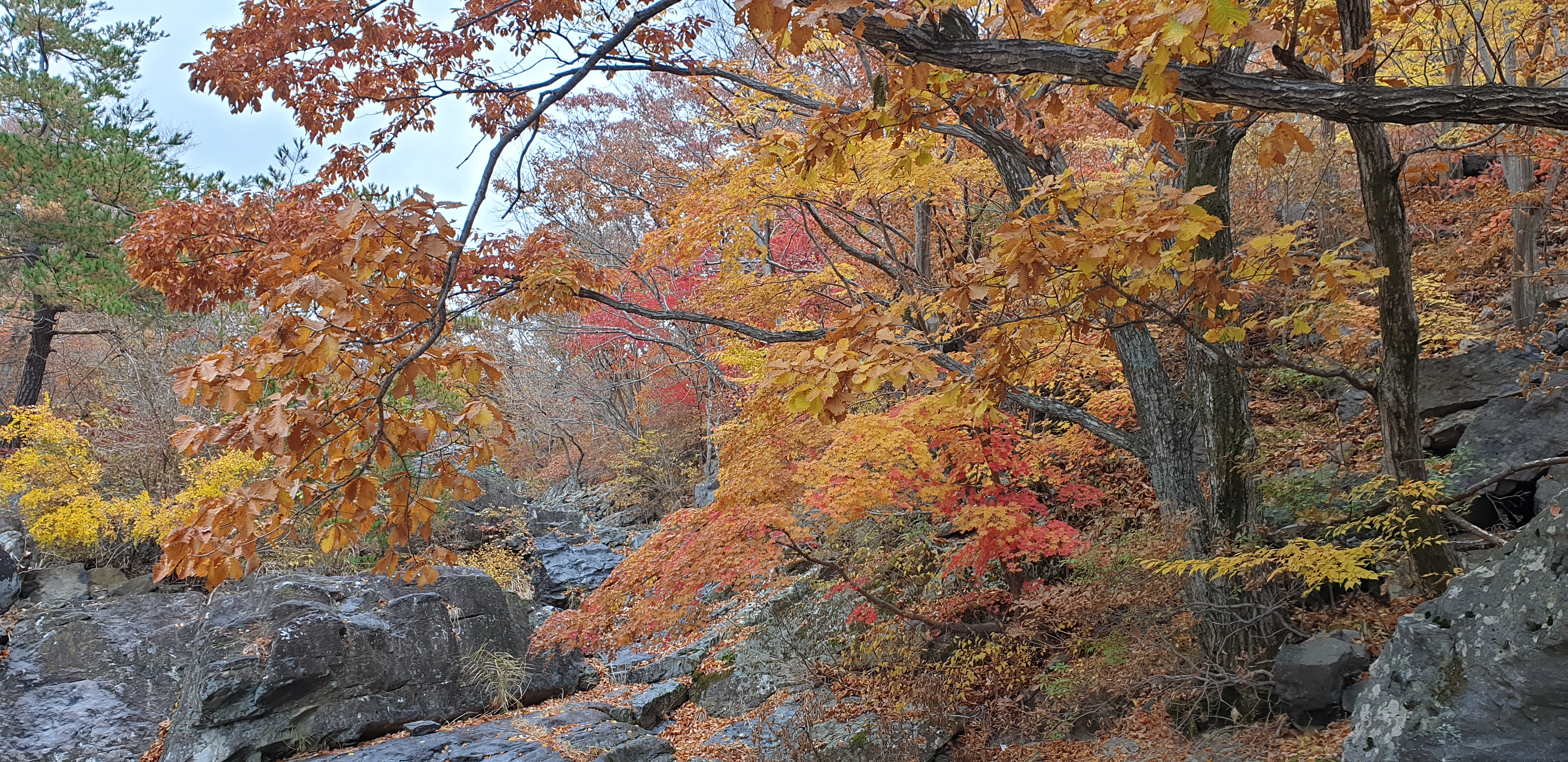 층층폭포 위 부분 계곡 단풍 ----