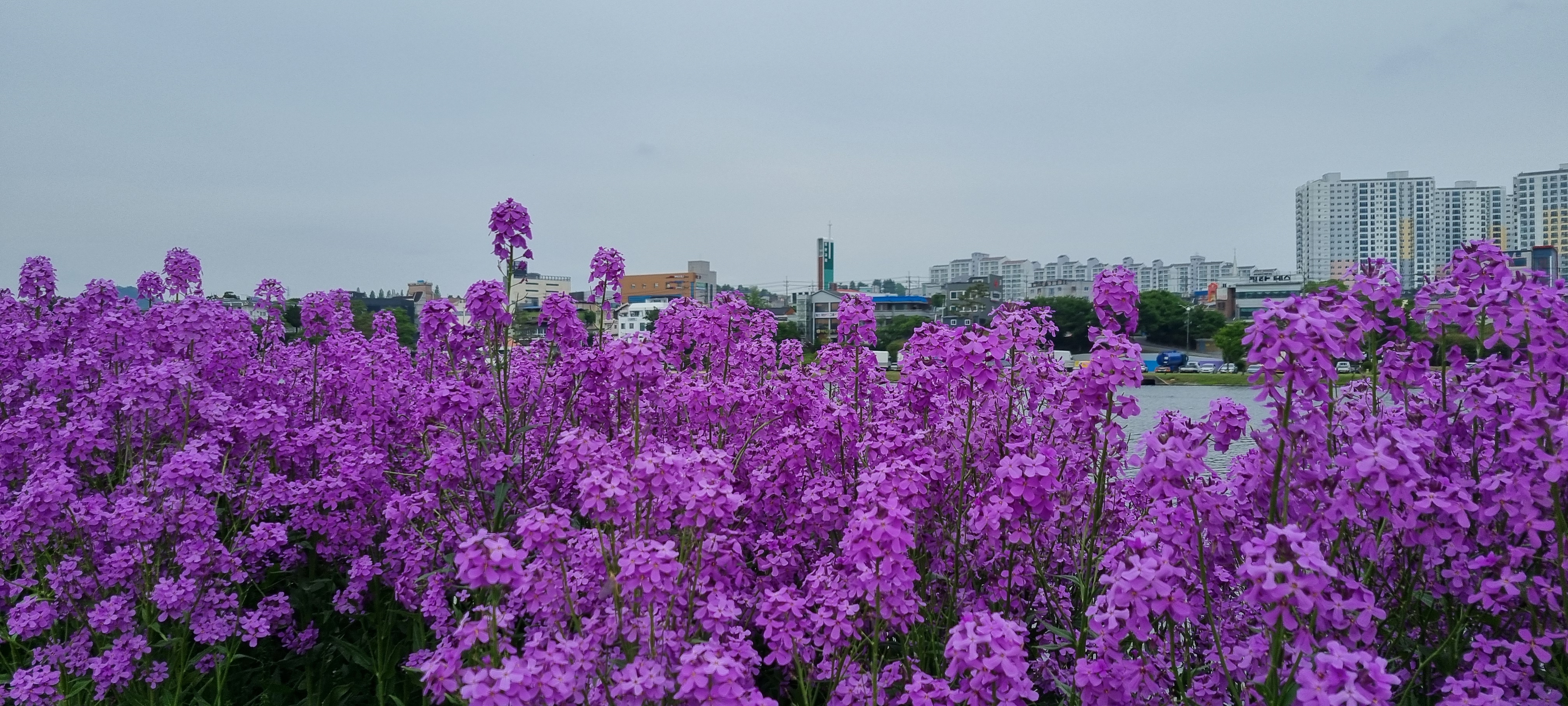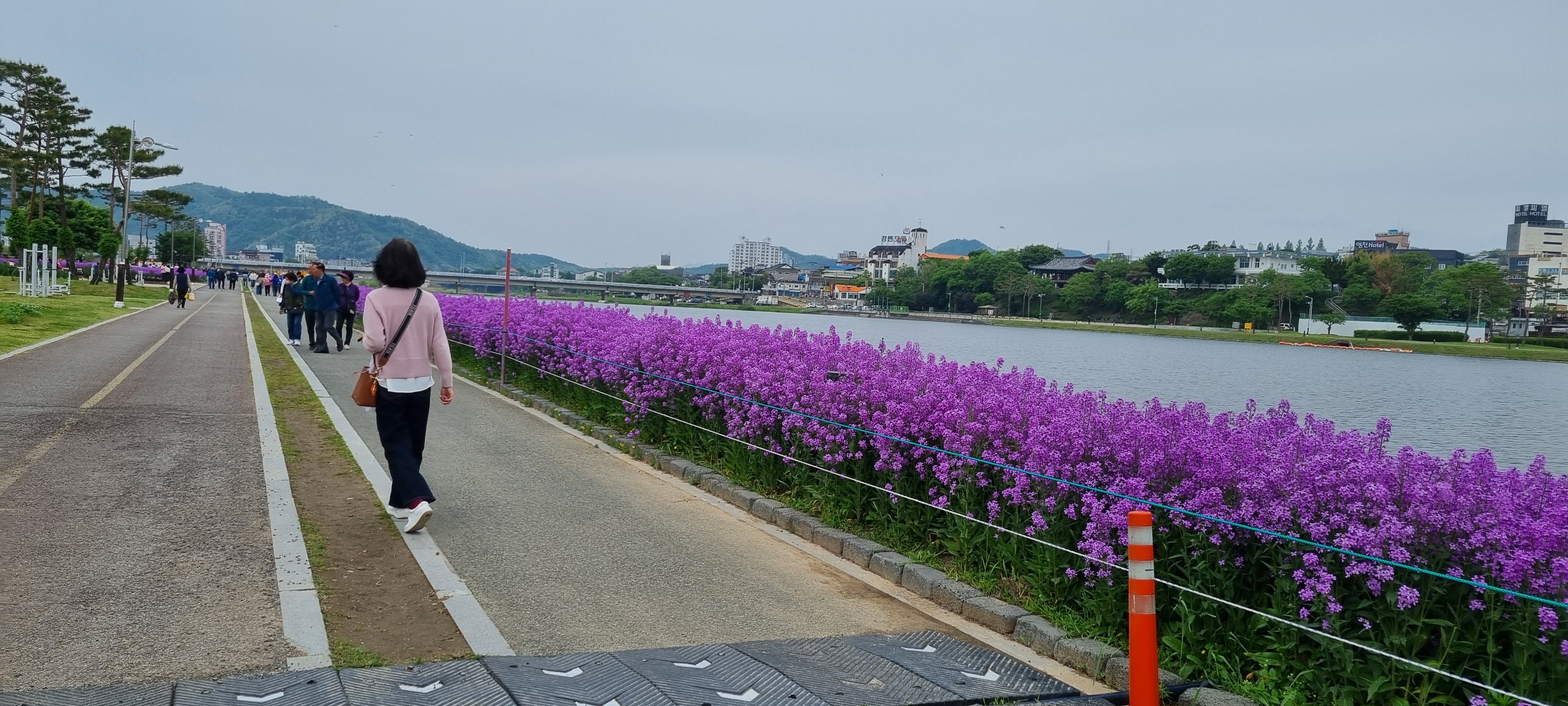이곳의 가장 큰 특징은 흔히 볼 수 있는 노란 유채꽃이 아니라, 선명한 보라색 유채꽃이 강변을 따라 화사하게 피어 난다는 것입나다ㅣ.