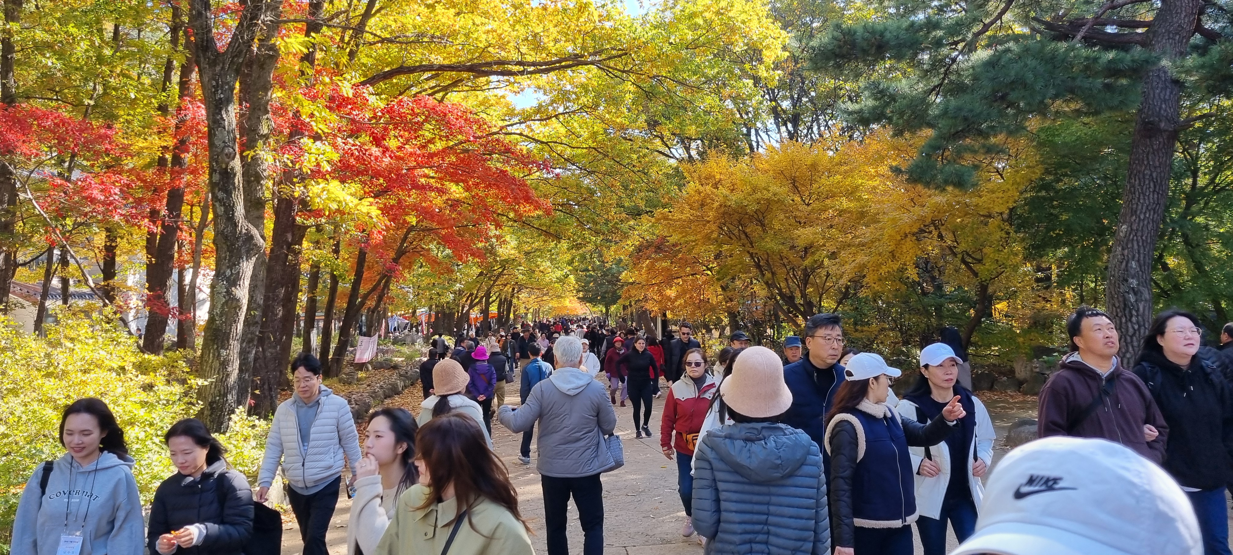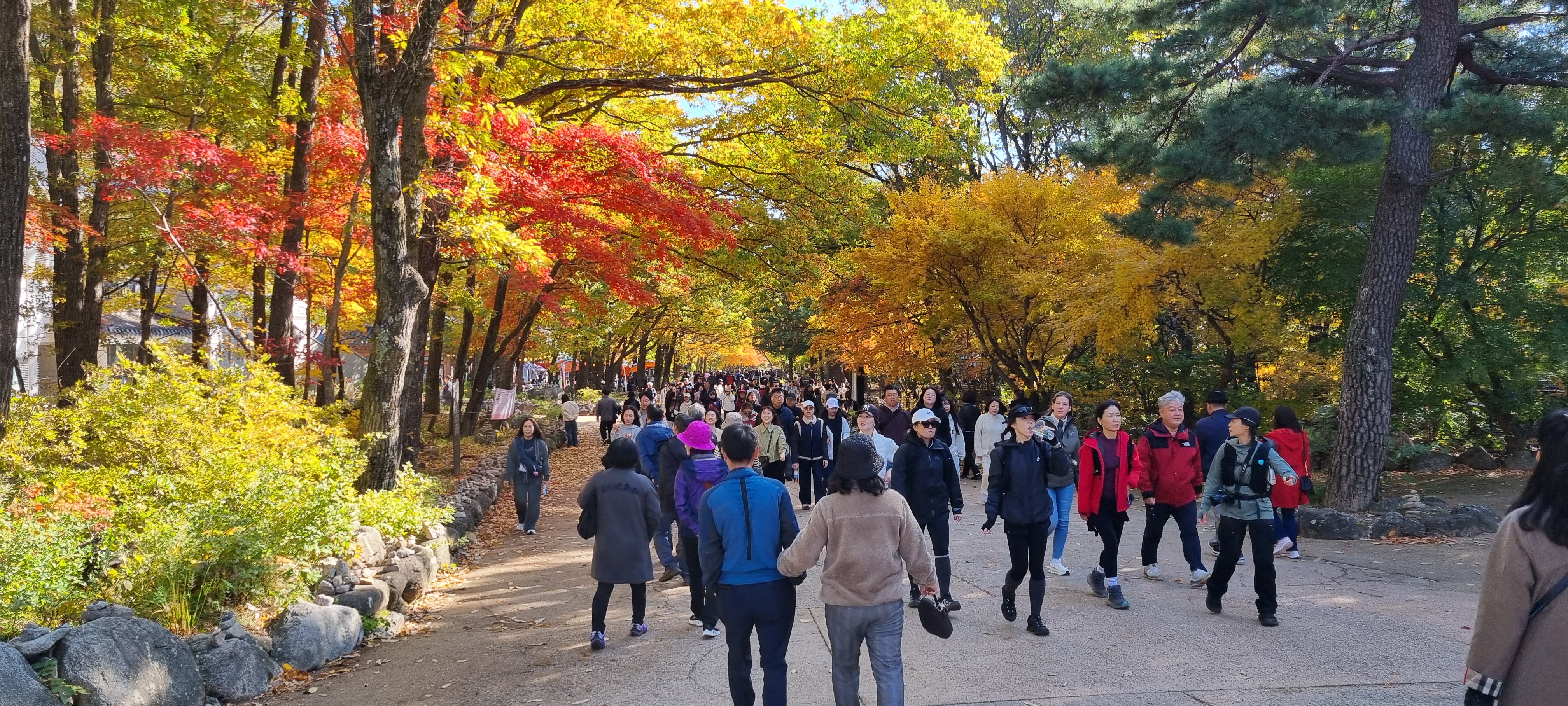 설악산 신흥사의 단풍과 인파
